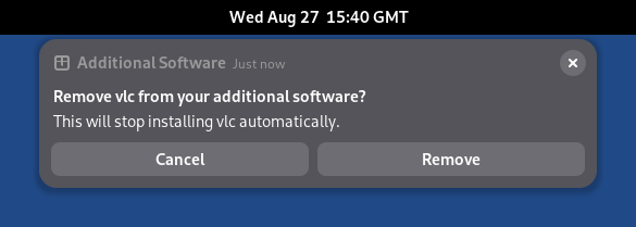 After the package is removed, a notification appears to ask if you want to remove this package from your list of additional software.