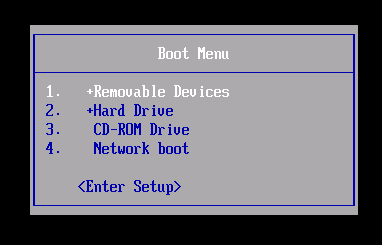 El Menú d'Arrencada és una llista de possibles dispositius per començar. La següent captura de pantalla és un exemple d'un Menú d'Arrencada: